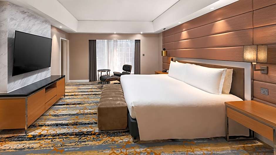Accommodates up to 3 adults, or 2 adults and 2 children on existing bed. Charges apply for extra bed requests. Includes an 8-foot wide Super King-sized bed or two Super Single twin beds, work area, luxury bath amenities, coffee and tea-making facilities, kettle, extra pillow, bathrobes, safe, steam iron, hairdryer, large LED TV and high-speed Wi-Fi.