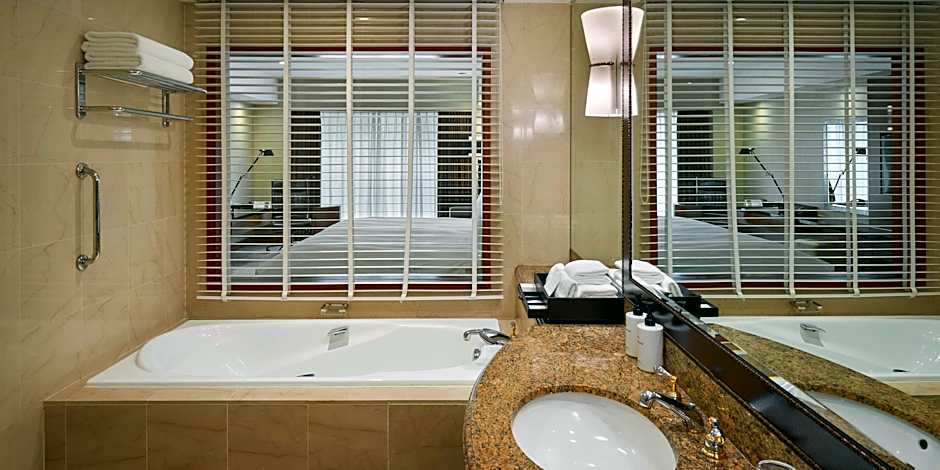This air-conditioned deluxe king room is fitted with a flat-screen cable TV, an ergonomic work space and a safe. It features an private bathroom with shower facilities. The room offers a pillow menu upon request.
